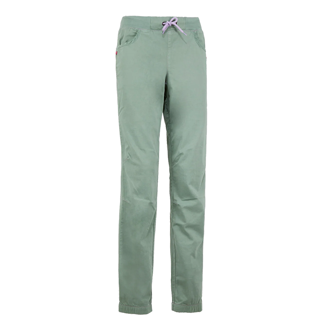 Confectionné avec soin à partir d'un mélange de bambou et de coton biologique, ce pantalon d'escalade et de plein air est doté d'un tissu satiné pour une finition élégante. Ce nouveau modèle comprend une empiècement en velours doux dans la poche arrière, une ceinture élastique ajustable et des porte-brosses de chaque côté. Profitez d'un confort optimal et d'une coupe ajustée flatteuse avec ce vêtement de fabrication italienne.