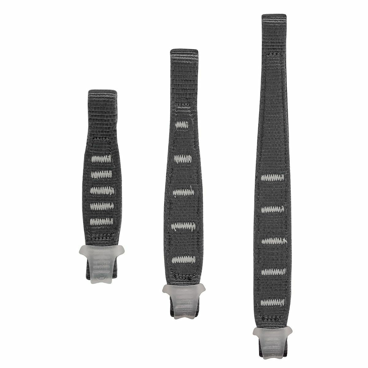 Les patins Petzl Express sont fabriqués en sangle plate de 25 mm, avec des boucles à chaque extrémité pour accueillir des mousquetons. Les extrémités sont effilées pour s'insérer parfaitement dans les supports des mousquetons. Ils sont équipés d'un système de maintien en caoutchouc pour garantir le bon positionnement du doigt courbé.