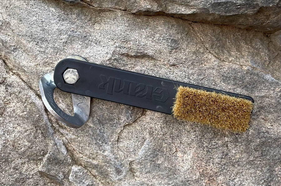 The Crank Brush is made of glass-filled nylon so it's strong enough to crank on a bolt. It's narrow enough to fit into the holster of most chalk bags. And it features premium boar's hair bristles to renew friction to even the nastiest holds outside and at the gym.