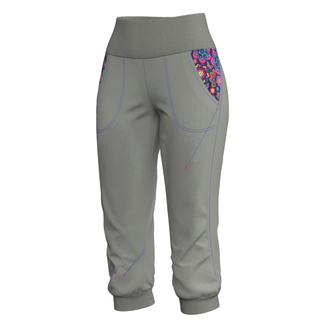 - Elastic waistband Pocket inserts with exclusive prints Elastic bottom cuff in fabric Embroidered logos