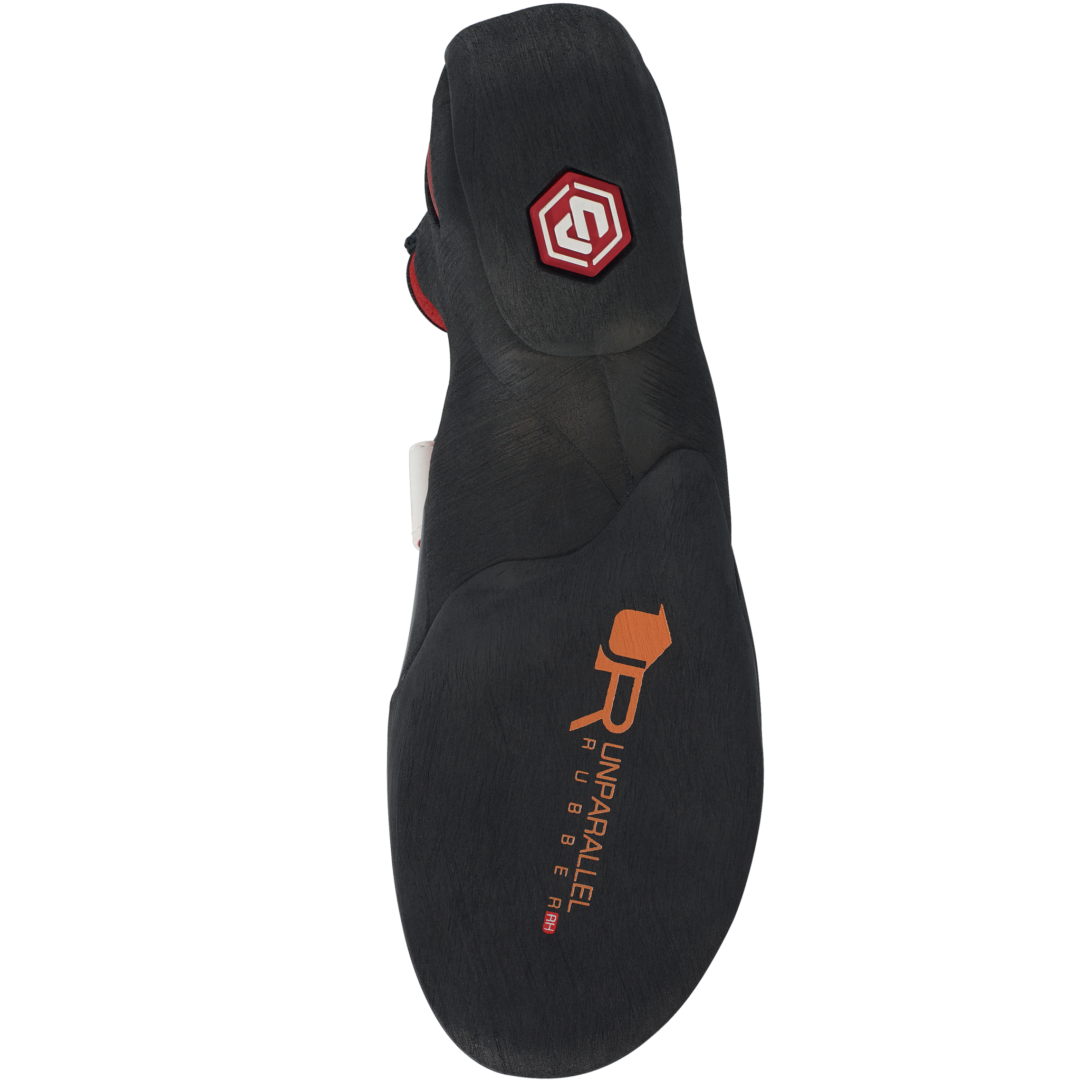 The Flagship features a toe cap made of durable high-friction rubber and a simple, yet durable, one-strap closure system that provides a secure fit. The outsole is made from RS and RH rubber and split into two pieces.