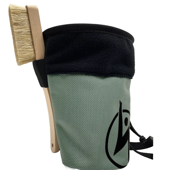 Whether you decide to belay or tie in and give it a go your trusty Flashed chalk bag is there to support you. The Should I Belay waist chalk bag features a front thumb fleece for wiping off excess chalk and an elastic brush holder.