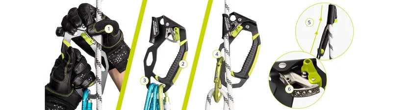 - The upper part of the ascender can be grasped with the other hand for two-handed ascents