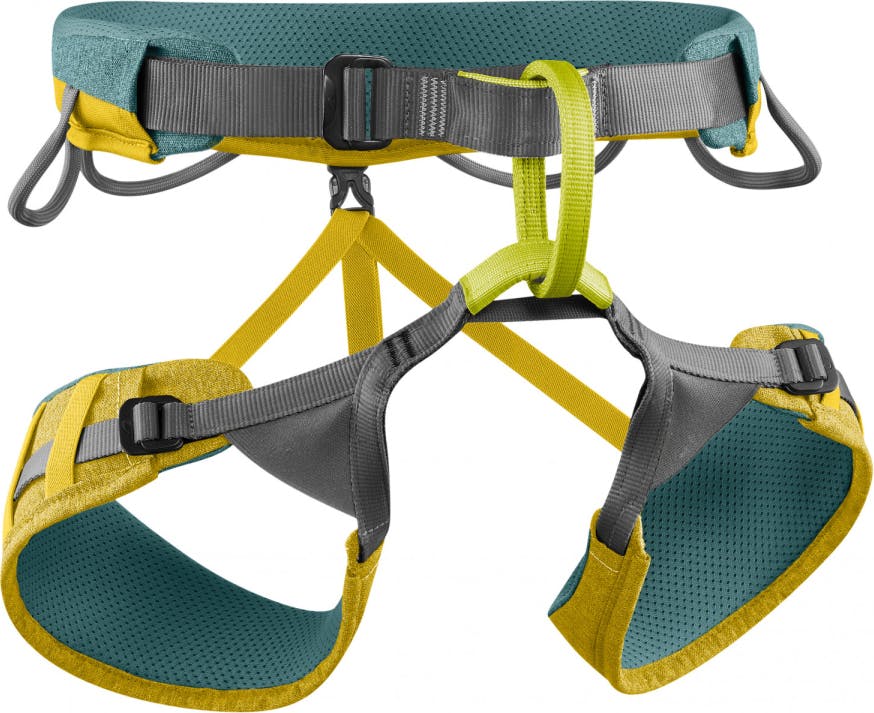 The Jay is the most well rounded harness in the Edelrid line. It has adjustable leg loops so you can wear extra layers and get in some cragging while there's still snow on the ground. The waist padding can be positioned on the belt at the spot where it adds the most comfort. Drop seat and ice-clipper slots are suited to mountain routes.