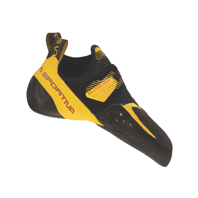 The Solution Comp is a softer and more sensitive re-boot on the original fan-favorite. With more rubber coverage on top of the toe and a more traditional, tapered heel, the Comp allows surgical precision on micro holds, enables powerful toe hooks and foot jams and provides super precise heel-toe camming performance.